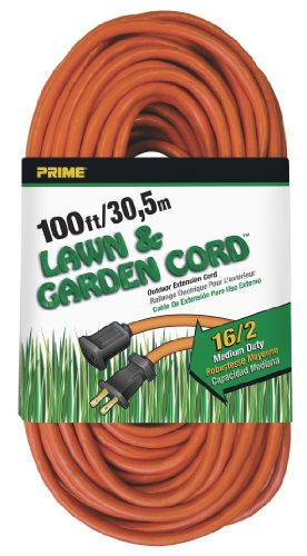 Prime Wire & Cable EC481635 100-Foot 16/2 SJTW Lawn and Garden Outdoor Extension Cord, Orange