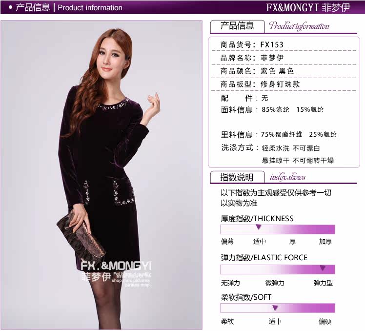 | 模特参数 | 模特所穿为小码,身高170,体重49kg,胸围84cm,腰围68cm,臀围96cm 侧拉链 | ||||||