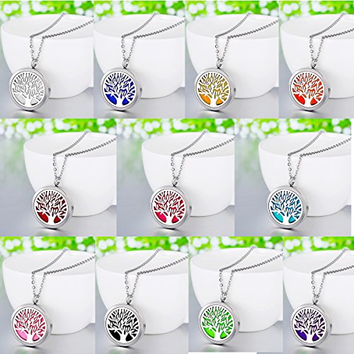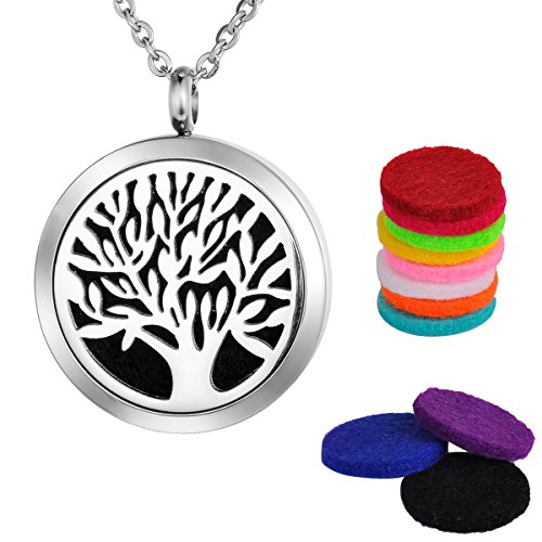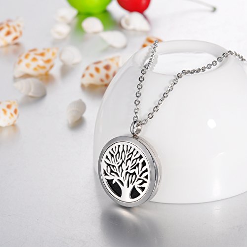 VALYRIA Aromatherapy Essential Oil Diffuser Necklace-Stainless Steel Tree of Life Locket Pendant,11 Refill Pads (Non-engraving)