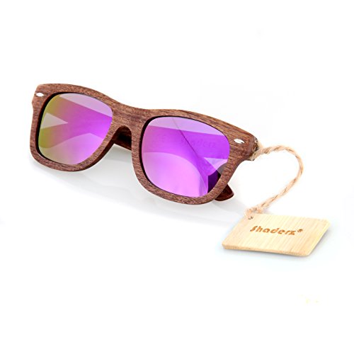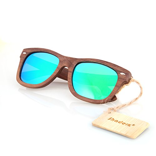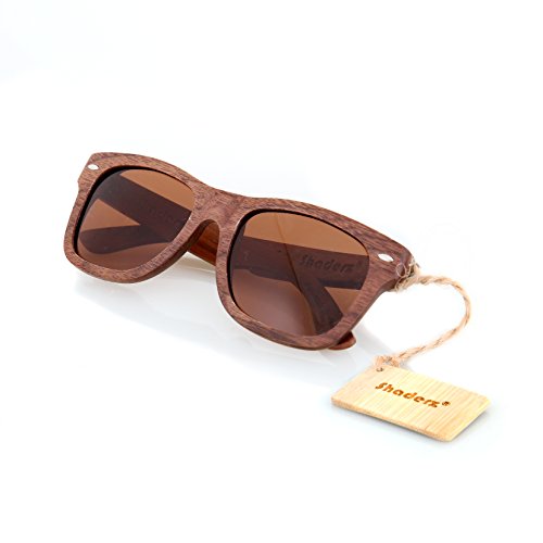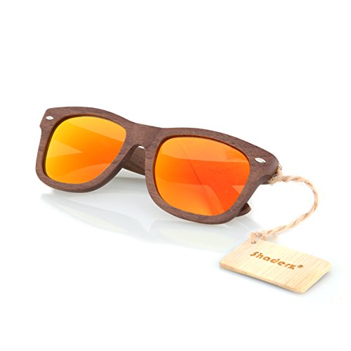 Shaderz® sunglasses will help protect your of you vision from harmful UV rays. Shaderz® mission is to provide customers with stylish, fun and affordable sunglasses for occasions and everyday wear. HAND CRAFTED SUNGLASSES- Each pair of sunglasses is hand crafted from real walnut wood and every pair is different. ECO FRIENDLY- Walnut is a natural eco friendly sustainable material. CLASSIC STYLE- Vintage inspired designer frames. The clean and smooth finish of the walnut wood creates a true natural look Style is comparable to Ray Ban Wayfarers and other designer brands. COMFORTABLE FIT- These lightweight wooden sunglasses and standard sizing works will with most people. Adjustable spring hinges that adjust to the size of your head. EYE PROTECTION-These wood sunglasses provides crystal clear vision and anti-glare effect with UV400 Protection. 100% MONEY-BACK GUARANTEE - Shaderz are backed by 100% guarantee that you are fully satisfied with your product or receive your money back.Feature