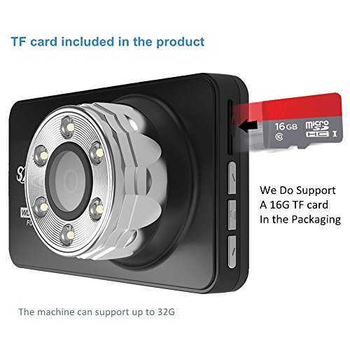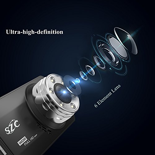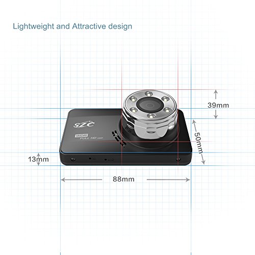 SZC Dash Cam Car Dashboard Camera Driving Recorder DVR 170 Wide Angle 3.0” LCD FHD 1080p with Loop Recording, G-Sensor, 16G TF Card