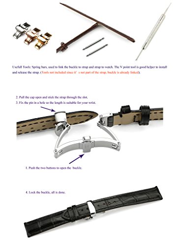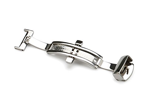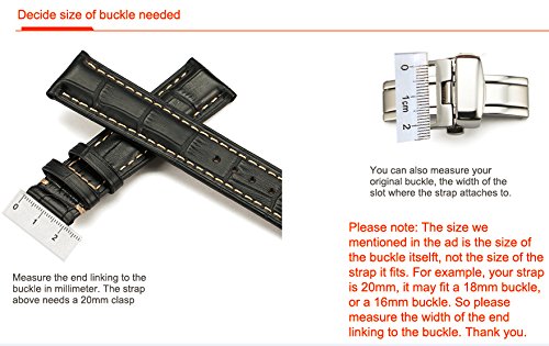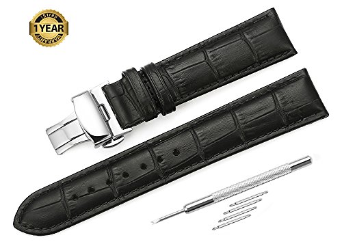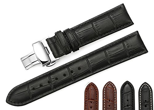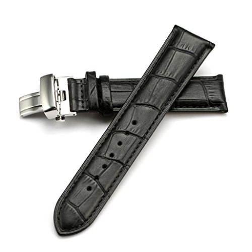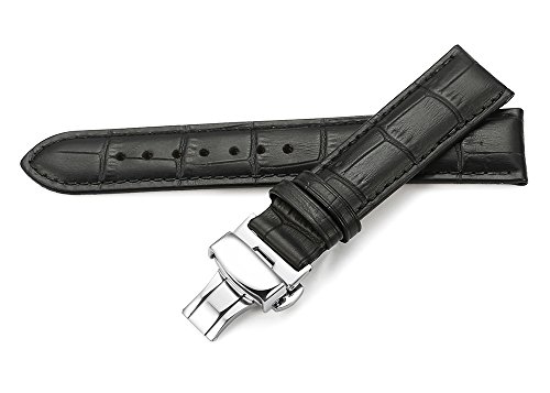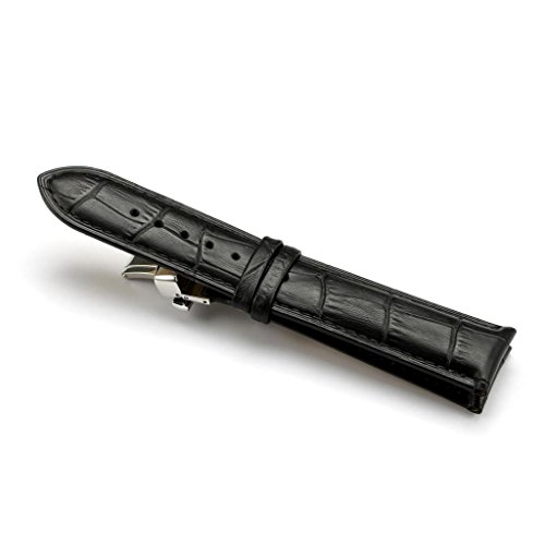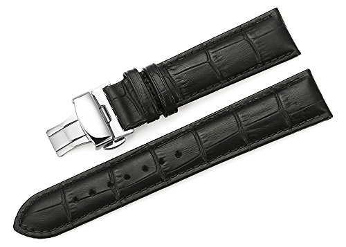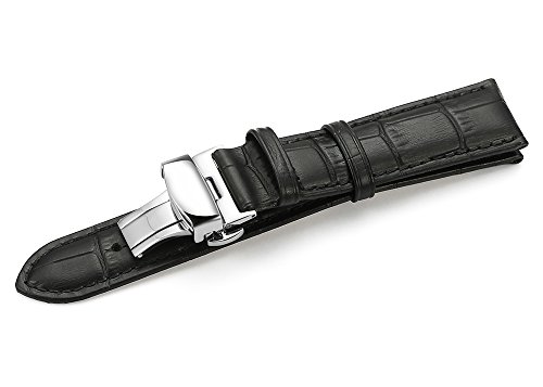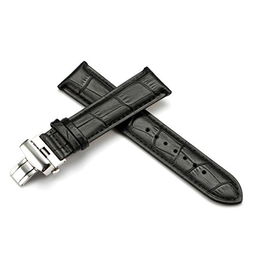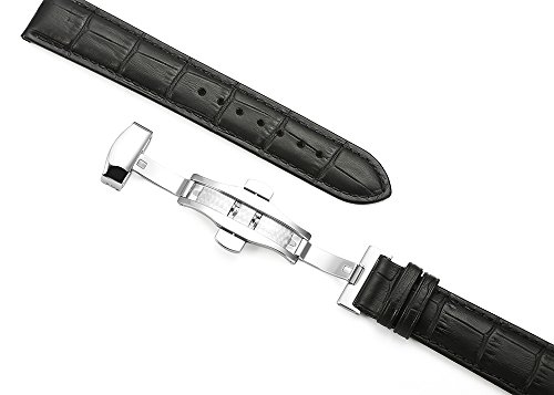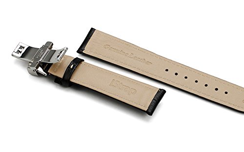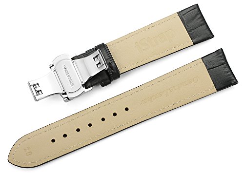 iStrap 18mm Genuine Leather Deployant Watch Band Double Push Button Buckle - Black 18