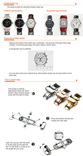 Product Description1.Width: 18mm/16mm 2.Length: 125mm/75mm 3.Thickness: Approx. 5mm tapers to 2mm 4.Buckle: 16mm metal deployant clasp, polished finish 5.Logo: iStrap on the strap0