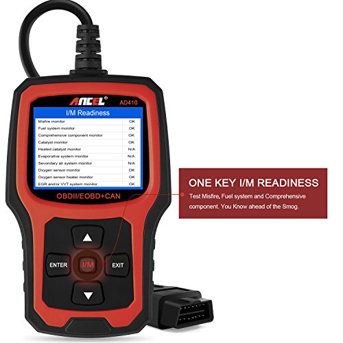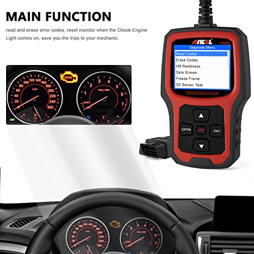 ANCEL AD410 OBD II Vehicle Check Engine Light Scan Tool Automotive Code Reader Auto OBD2 Scanner with I/M Readiness (Black-Red)