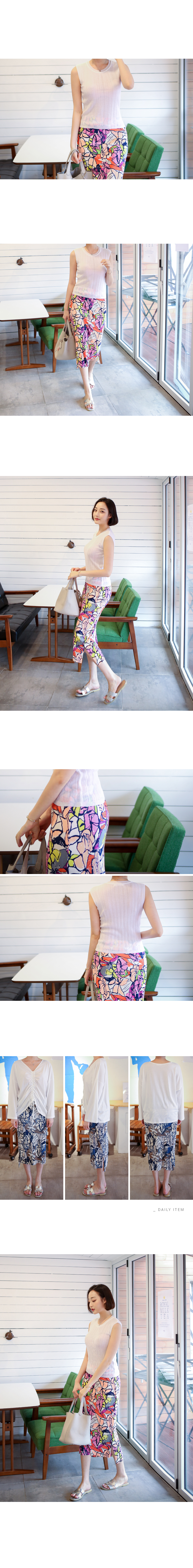 산뜻한 컬러감과 플리츠 소재감이 잘 어울리며