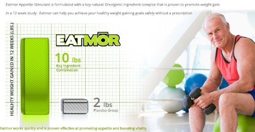 Feature : Weight gain pills that improve appetite and assists the body to gain weight in the right places. Avoid options that can cause problems such as cushing syndrome which causes weight gain in the lower back and belly. Eatmor is a weight gain formula that uses bitter herbs and other natural ingredients to promote healthy muscle mass, weight gain, and increased energy. / Eatmor has been developed to direct where the weight to go to muscles that are more often used. Users notice an enhancement in all muscles: arms, legs, back and butt. Eatmor gives you the appetite and cravings to eat the right food to improve muscle mass and strength. / Eatmor is also recommended by caregivers from coast to coast to improve appetite. As an appetite stimulant for the elderly, Eatmor has been recognized as an effective way to stimulate the appetites in older adults and works well for men and for women as well. / Eatmor helps as an enlargement agent to boost your muscular ability to grow. By acting as a weight and mass gainer Eatmor supports Increasing the amount of calories you can take in / 100% Satisfaction guaranteed with a 30 day money back guarantee.