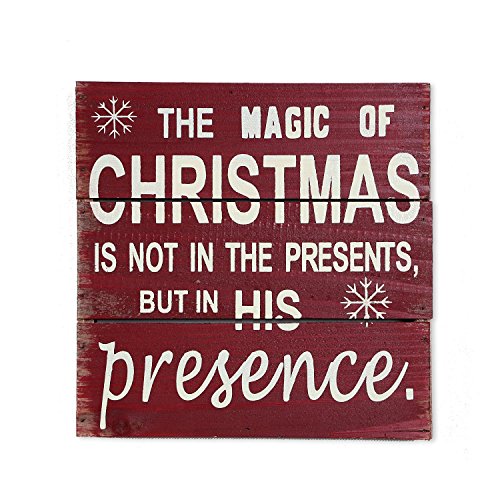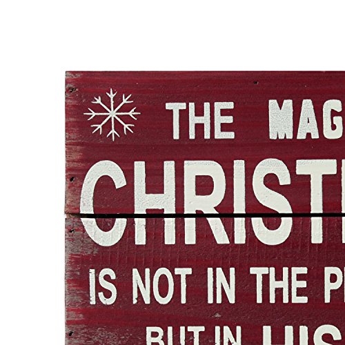 Antique Style Wood Wisdom Sign The magic of Christmas Red Holiday Decor Hanging Sign 8" X 8"
