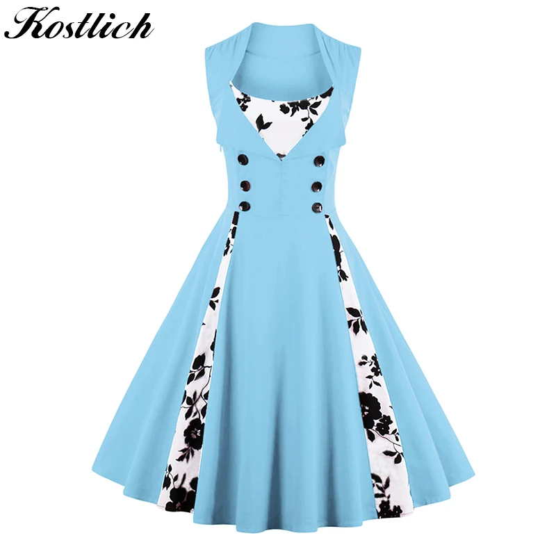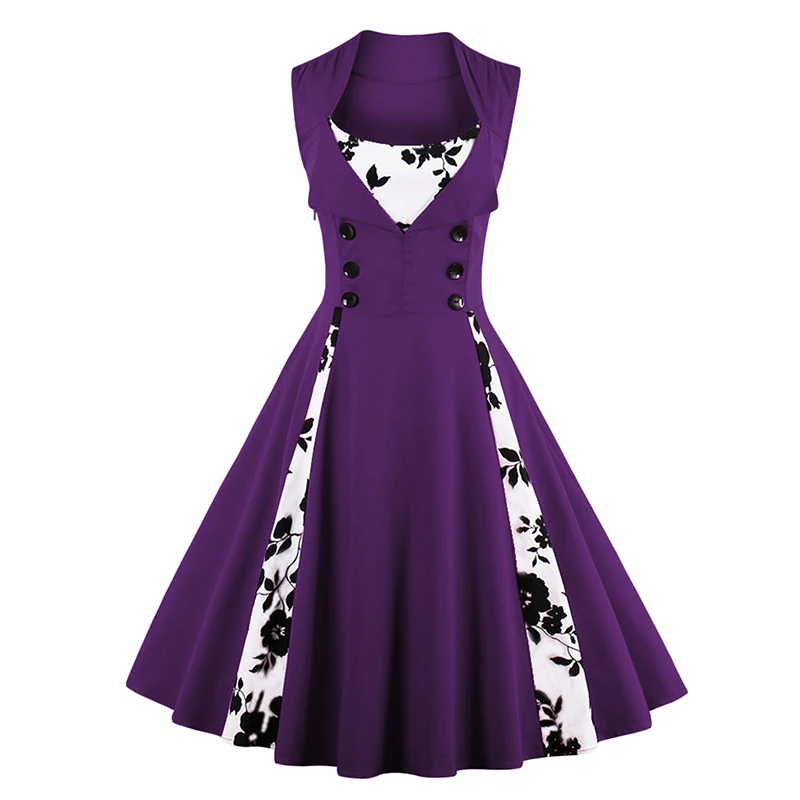 Color: Light Blue Purple Wine Red Black Color Women Vintage Dress