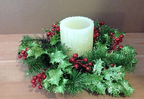 - Glittered Holly Christmas Candle Ring 10 Inch Ring Fits A 3 Inch Pillar Candle (Not Included)