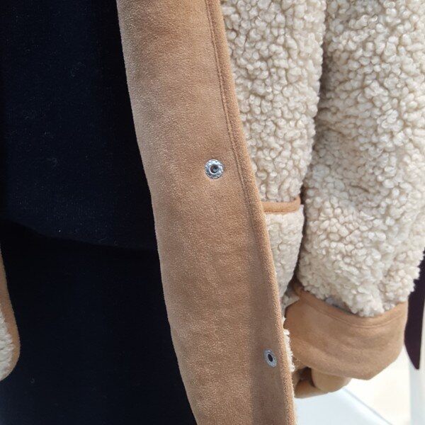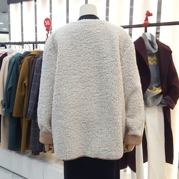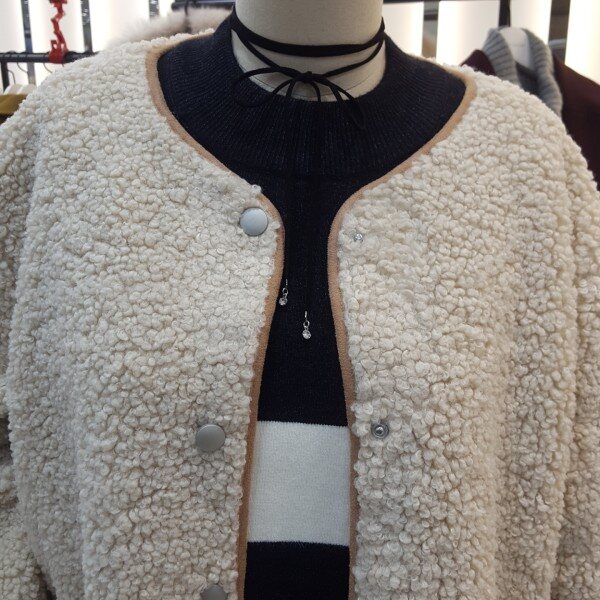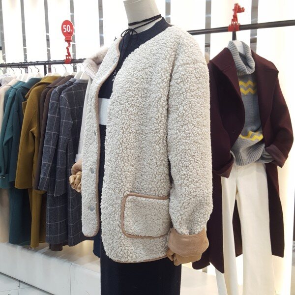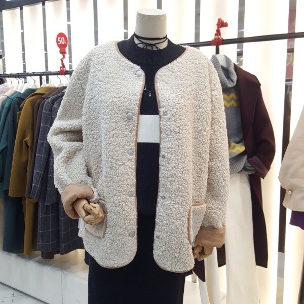 귀엽고 포근한 양털 뽀글이 점퍼입니다.카라리스 디자인으로 가볍고 보온성이 좋은 아이템입니다.안감 인조스웨이드로 되어있어 더 따뜻하게 착용할수있는 제품입니다.양쪽주머니 디테일이 실용적이며 더 귀여운 느낌을 연출할수있는 아이템 입니다.