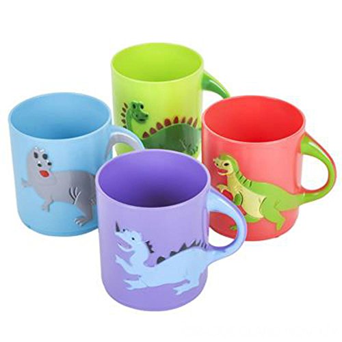 - One Dozen Colorful Plastic DINOSAUR Mugs Assorted Colors & Styles