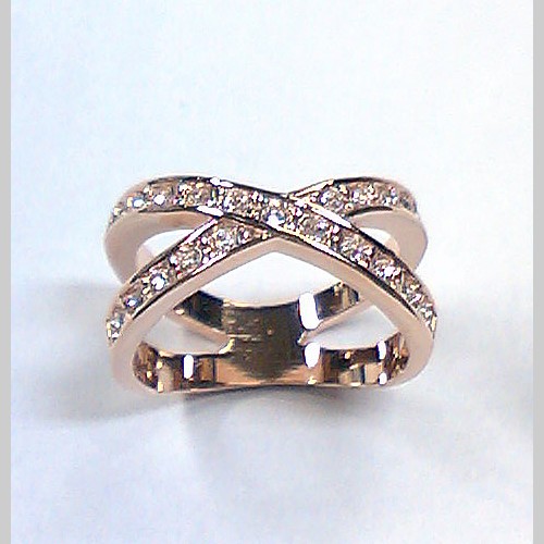 幅広ですが、細いラインの交差ですので女性の指にもフィットします。