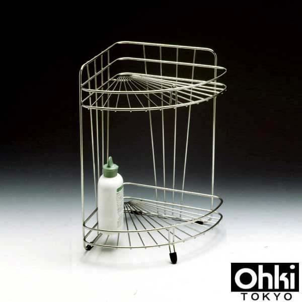 三角形なのでスペースを最小限のおさえて置くことができます。用途に合わせて必要な物を置いて使用できます。 ※サプライヤー直送品 ご注文後3~4営業日後の出荷となります【商品名】大木製作所 ステンレス 三角コーナー2段