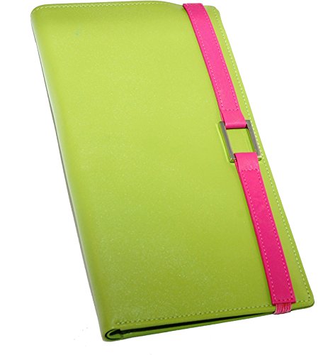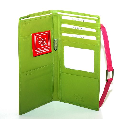 -. Title : Leather Travel Wallet- Meadow Green with Hot Pink Accent
