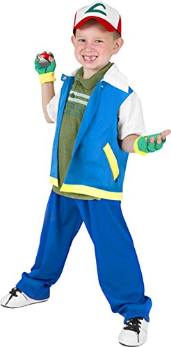 -. Brand : Fun Plus -. Color : Multi Color -. Department : Boys -. Feature : Blue pants with elastic waist / Aqua blue short sleeve jacket / Red and white hat / Green fingerless gloves / Green polo shirt and shoes not included -. ProductGroup : Apparel -. ProductTypeName : CHILDRENS_COSTUME -. Size : Medium 8-10 -. Title : Child's Video Game Collector Costume -. UPC : 789610996872