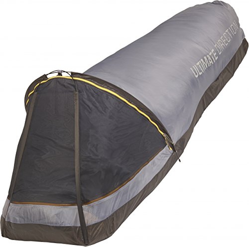 Studio : Ultimate Direction Publisher : Ultimate Direction Binding : Misc. Product Description The Ultimate Direction FK Bivy is a highly breathable, non-waterproof Bivy that offers unique protection while out on the trail during ultralight excursions. Made with ultralight and sheer 7D Nylon Micro-ripstop fabric on top and 20D Nylon Ripstop with Silicone finish on the bottom for ground protection. This bivy is perfect for dry conditions where you need to get way from wind and bugs. You won't sweat-out your sleeping bag or overheat with this bivy like you can with low-breathable bivy's. The "frog-mouth" opening style entry provides easy entry and enough headroom that you'll never feel claustrophobic. The twin arch pole construction provides ample headroom. Sewn-in strap keeps your sleeping pad securely in place. Zippered closures on mosquito netting and nylon ripstop protect from both bugs and wind. Use with Ultimate Direction's FK Tarp for full water protection. Minimum Weight: 7.2 oz / 204 g. Packed Weight: 9.3 oz. / 265 g. Sizes: Regular 82 in / 208.28 cm, Long 88 in / 223.52 cm. NOTE: Not for use alone in wet conditions. 0