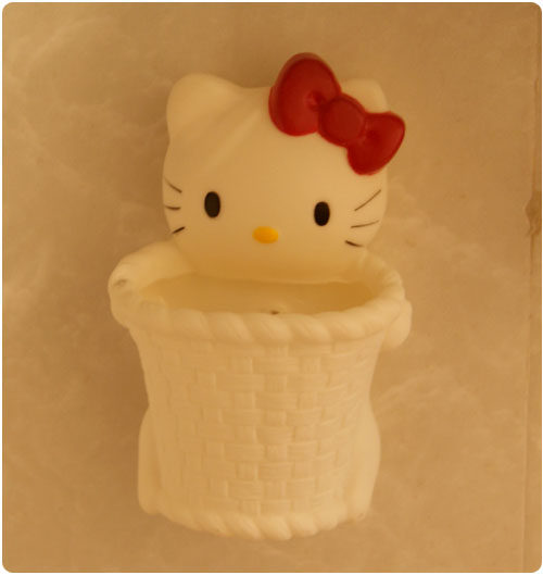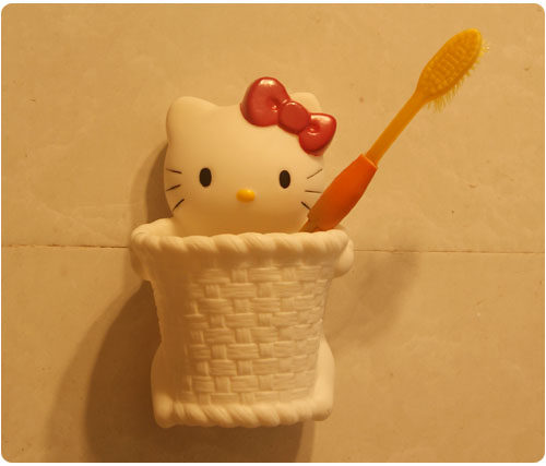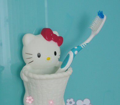 hello kitty cat head tube stereo toothbrush holder sucker debris