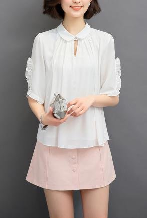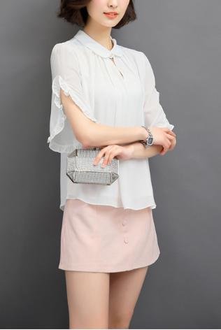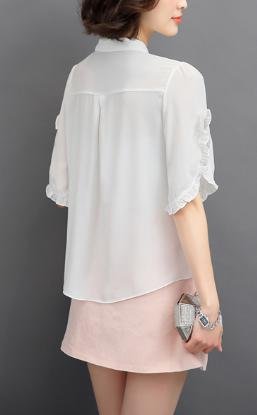 -. Feature : 袖のフリルが華やかな、プルオーバースキッパータイプのブラウスです。女性らしい丸襟とタックが、上品で繊細なフェミニンでレディライクなデザインは、通勤やオフィスなどでも大活躍☆ 柔らかで華やかなシルエットで、スカートにもパンツにも合わせやすい1枚です! / 普段着にはもちろん、通勤やオフィスでも使いまわせる、コーデの邪魔をしない定番カラーで、着回し力は◎ パンツにもスカートにも合わせやすく、タックインもタックアウトもばっちり決まります☆ 柔らかくなめらかな質感の生地を採用しています。今の季節から初夏、真夏の肌寒い日まで、長く着られるブラウスです♪ / カラー:白(ホワイト)、青(ライトブルー)、ピンク メイン素材:ポリエステル セット内容:ブラウス サイズ:S、M、L、XL(※サイズは商品画像、商品説明に記載しております。海外製の為、日本の一般的なサイズ感よりもやや小さめに作られている場合がございます。ご購入いただく際は、サイズ表をご確認くださいませ。) / デイリーに使えるブラウスは、何枚あっても便利♪ シンプルに決めたいときはワンポイントでキリッと凛々しく、キュートに着こなしたいときは、花柄や丸襟(ラウンドカラー)のものや、フリルやタック、ギャザーの入ったものがおススメ。しわになりにくく、着心地もいい高品質なブラウスは、スカートやパンツなどのボトムスと相性バツグン。トレンドのデニムと合わせて、きれいめカジュアルにコーデしたり、ふんわりプリーツスカートと合わせてゆるふわガーリーコーデにと、いろいろ着こなせます。 / AngelMoon(エンジェルムーン)はブラウス、ワンピースをはじめ、チュニック・シャツ・カットソー・セーター・カーディガン・トレーナー・パーカー・キャミソール・タンクトップなどのアウターやインナー、タイトスカート・ミニスカート・ロングスカート・ワイドパンツ・ガウチョパンツ・スキニー・レギンス・サブリナパンツ・チノパンなどのボトムス、ウィッグ、ストール、スカーフ、バッグなどのファッション小物など、オールシーズン着られるものや、春、夏、秋、冬、の季節に合わせ、年齢を問わずおしゃれを楽しんでいただける、トレンドを押さえたレディースファッションを取り揃えています。