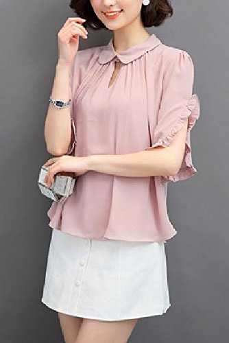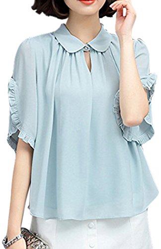 -. Title : (エンジェルムーン) AngelMoon ブラウス レディース 半袖 シフォン 盛り袖 フリル 丸襟 ギャザー フォーマル