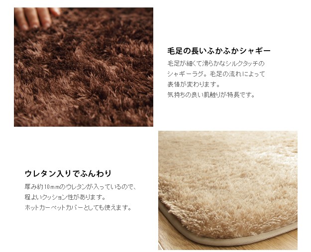 4色から選べるふんわりタッチのラグは気持ちの良い肌ざわり。毛足の流れによって表情が変わります。