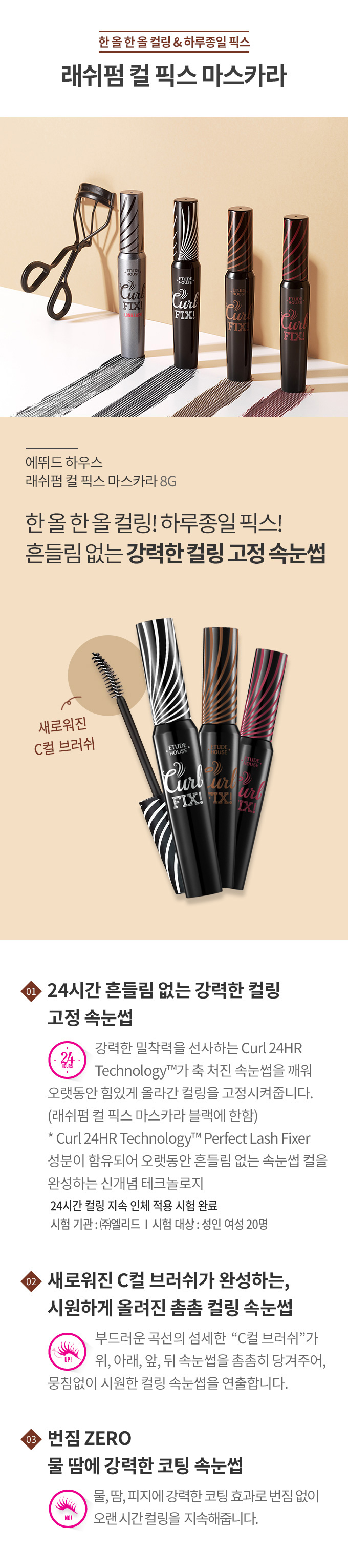涙や汗、皮脂に負けないウォータープルーフで、にじみにくく美しいカールを長時間キープします。