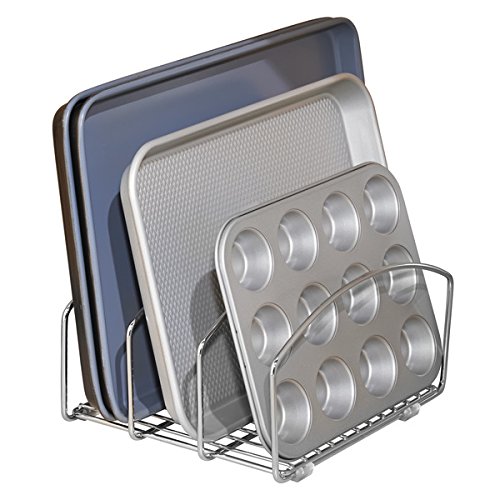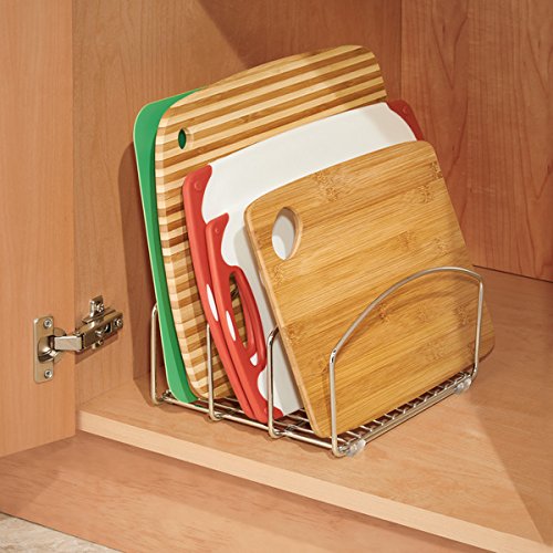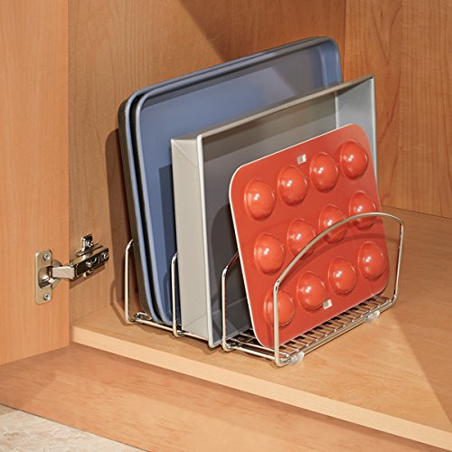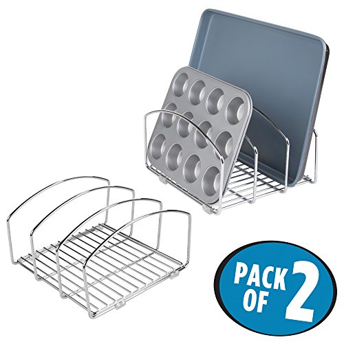 mDesign Kitchen Cookware Organizer for Cutting Boards and Cookie/Baking Sheets - Pack of 2, Chrome