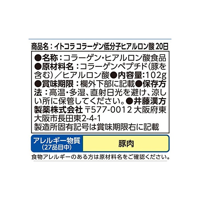 원본상품명: 井藤漢方製 イトコラ コラゲン低分子ヒアルロン酸 20日分