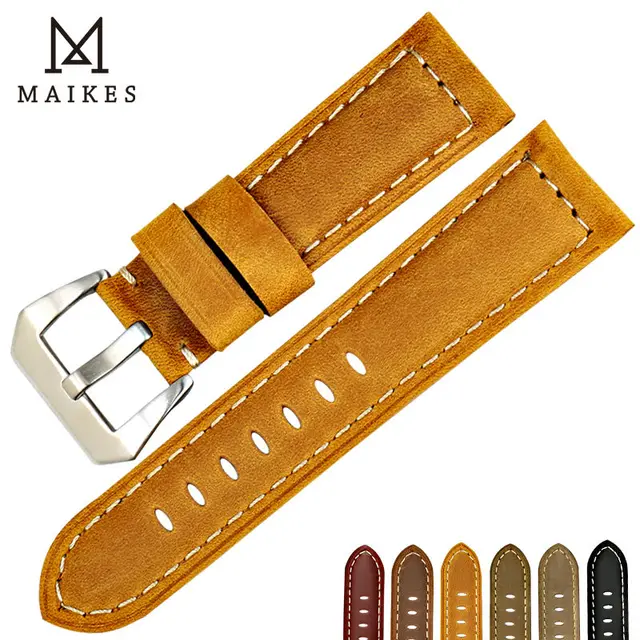 | [해외]MAIKES 시계 액세서리 가죽 시계 줄 22 미리메터 24 미리메터 26 미리메터 시계 스트랩 빈티지 시계 팔찌 삼성 기어 s3 또는 파네 |