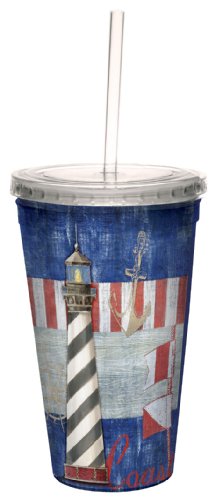 Tree-Free Greetings cc33427 Red White Blue Vintage Lighthouse by Paul Brent Artful Traveler Double-Walled Cool Cup with Reusable Straw, 16-Ounce, Multicolored