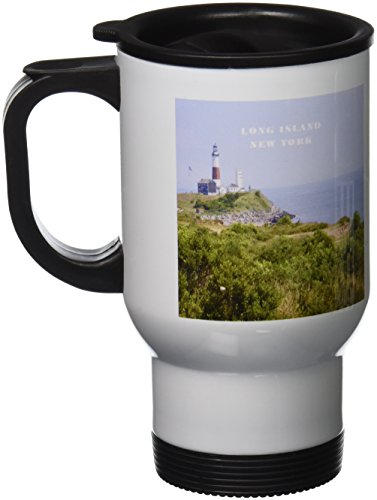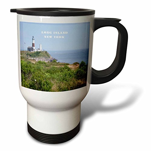 3dRose Montauk Point Lighthouse on Long Island New York Stainless Steel Travel Mug, 14-Ounce