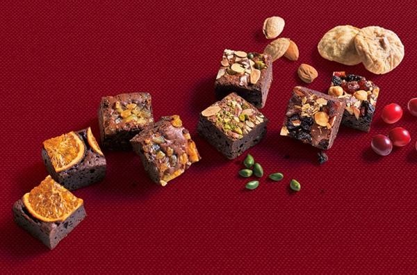 | ナッツやドライフルーツをトッピングした贅沢なブラウニー。 |