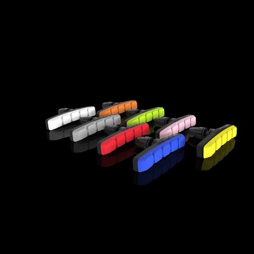 B-2 air flow brake shoes feature a simple, one-piece, co-molded pad design that provides loads of stopping power. Available in black with white, red, blue, yellow, Lime, orange, grey or pink pads, they are a great way to add color to any bike.Feature