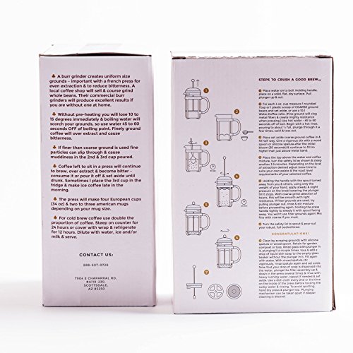 AROMATIC OILS - Essential oils remain with a French Press, resulting in full robust flavor prized throughout the world. Make coffee at home like a Barista for a fraction of coffee shop costs