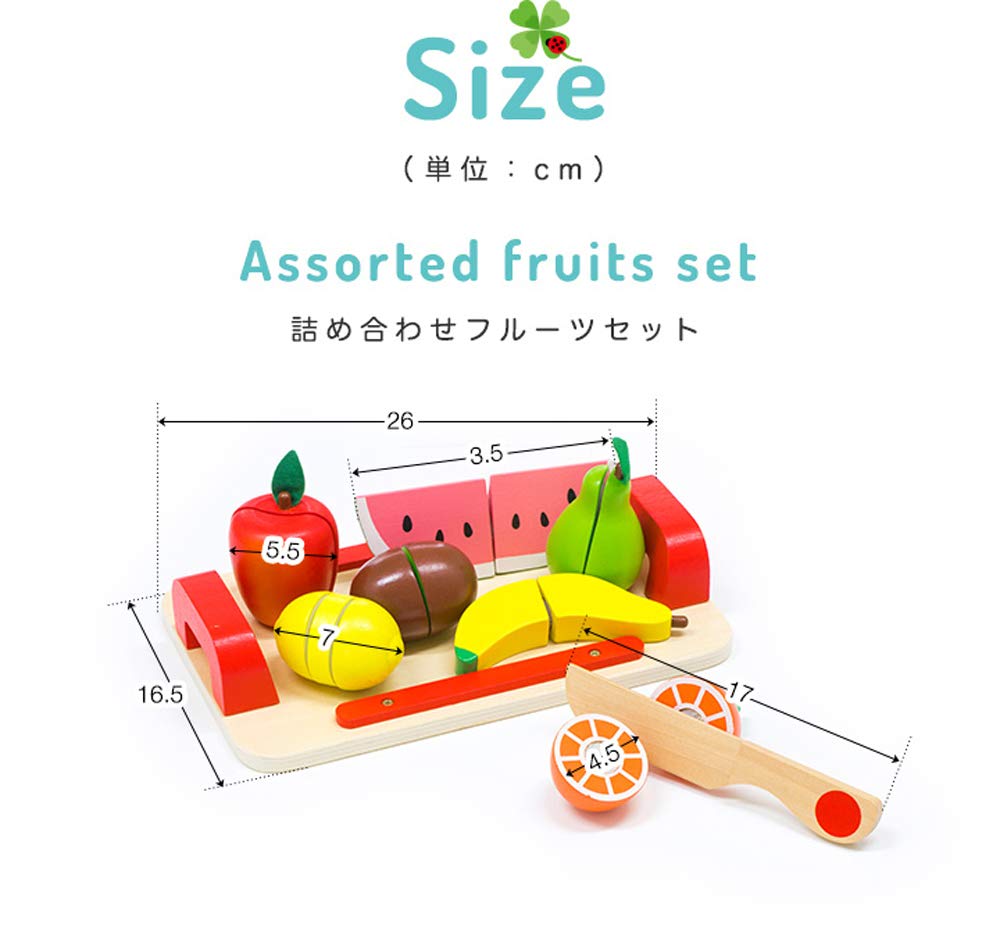 【詰め合わせフルーツセット】サイズ (約)幅26cm×奥行き16cm×高さ5cm※まな板のサイズとなります。 重量 (約)668g ※総重量になります。 材質 木・ポリエステル・ナイロン・スチールネジ