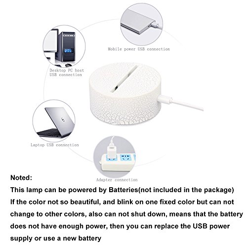 -. Feature : EXCELLENT GIFT ITEM This 3D visual illusion night lamp is a great idea for the ones who want to buy a gift for you kids girls boys childrens of all ages, animal lovers, it is a perfect gift choice for birthday bday Xmas Chistmas and any festival you need to send a gift. / LONG LIFESPAN AND ENERGY SAVING, the 10 led beeds of this 3D dolphin night light are inside the lamp base, it is long lasting, each of our energy efficient Led bulb has a lifespan of 10,000 hours. input 100~240V, Output: 5V, 0.5A, 0.012kW.H/24 hours / MULTI-COLOR DISPLAY AS A NICE HOME DECOR, this 3D illusion night light in 8 changeable color modes, 7 monochrome color and 1 flashing color, you can change the colors by touch the switch on top to Red, Green, Blue, Yellow, Light blue, Purple, White, Flashing mode, this 3D anime desk night light can be put on your table as a room decoraion, also can be a collection for car gun or plane lovers / SAFE FOR KIDS USE, our 3D night lamp use low energy consumption LED, never over heat during use, it is safe when touched by kids / SOFT WORM GLOW HELP PEOPLE FALL ASLEEP, this 3D illusion image was engraved on a acrylic palte, insert the plate into the lamp base, when lit up, it can produces a soft warm glow, make you seems like walking into a dream scene, let you do not scare the dark and help people fall asleep easily