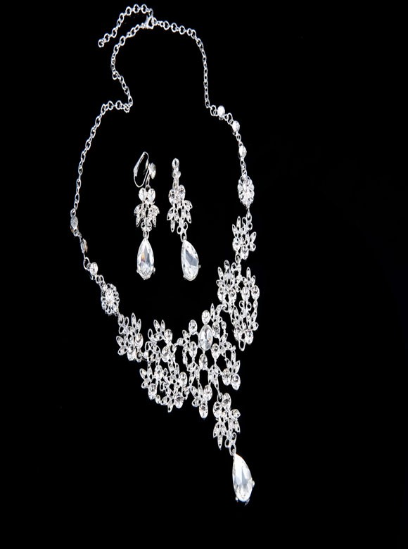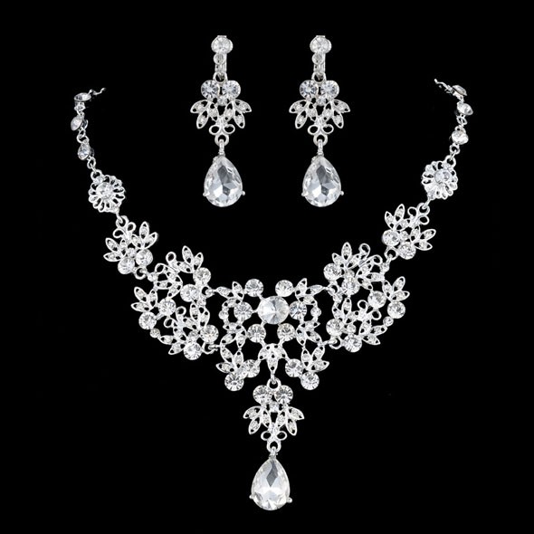 上品で華やか ウェディング イヤリング+ネックレス 2点セットです。 結婚式や二次会、パーティなどにお出かけになる際にお役に立つアイテムです。