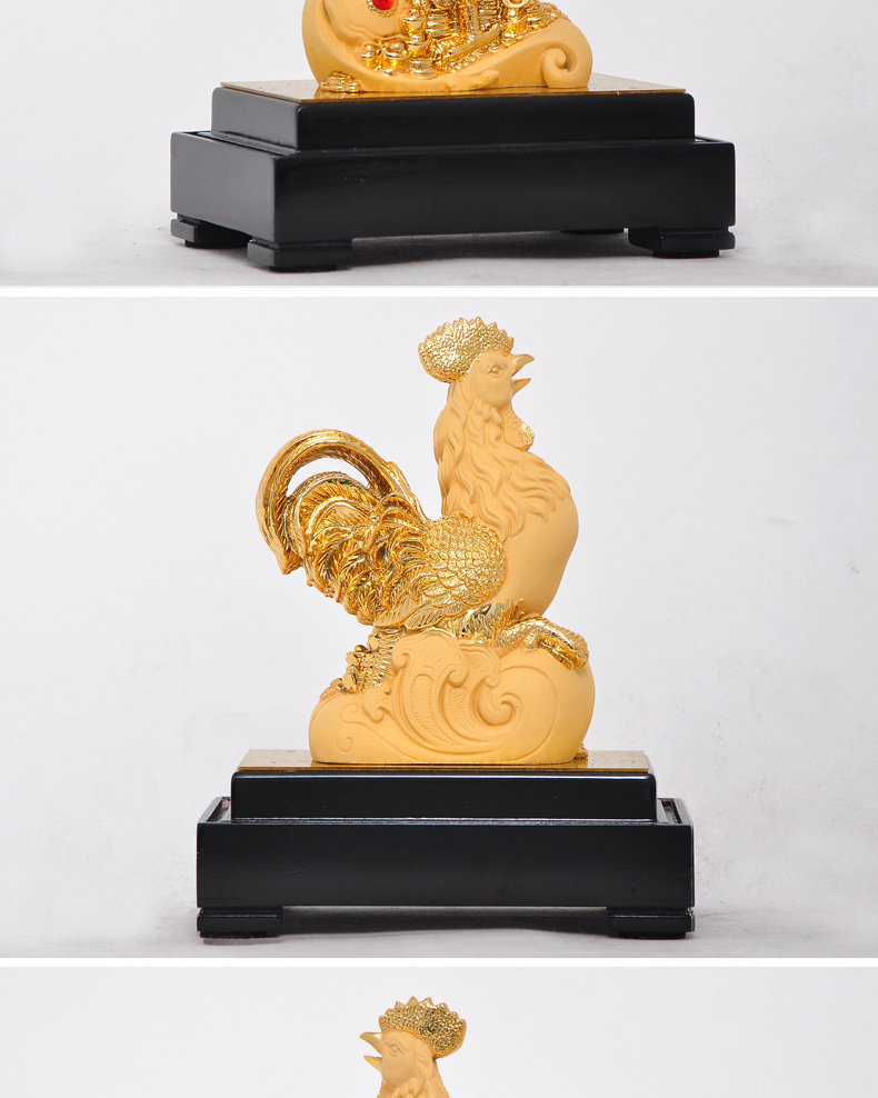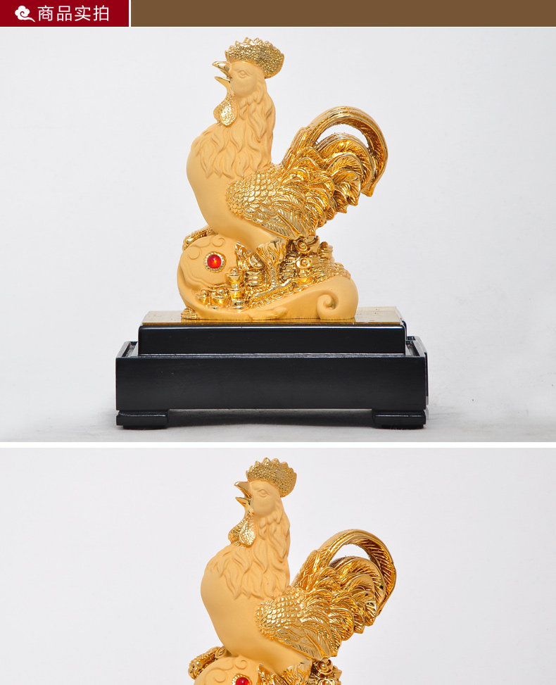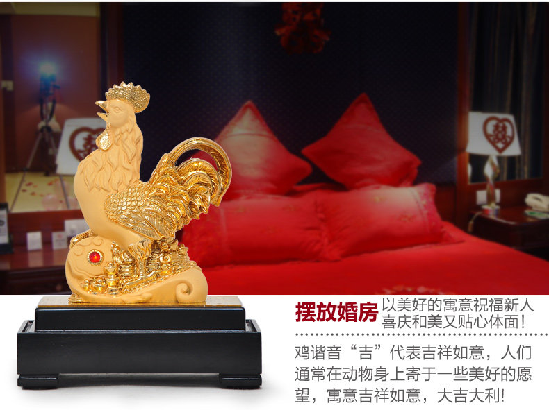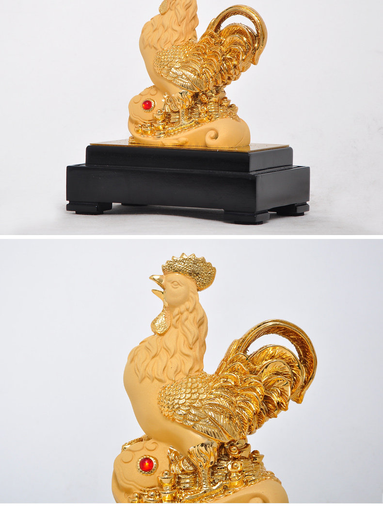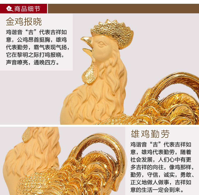 鸡摆件绒沙金工艺品生肖生日商务礼品办公室办公桌客厅玄关装饰品