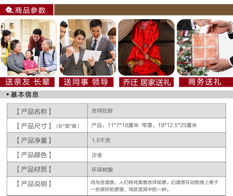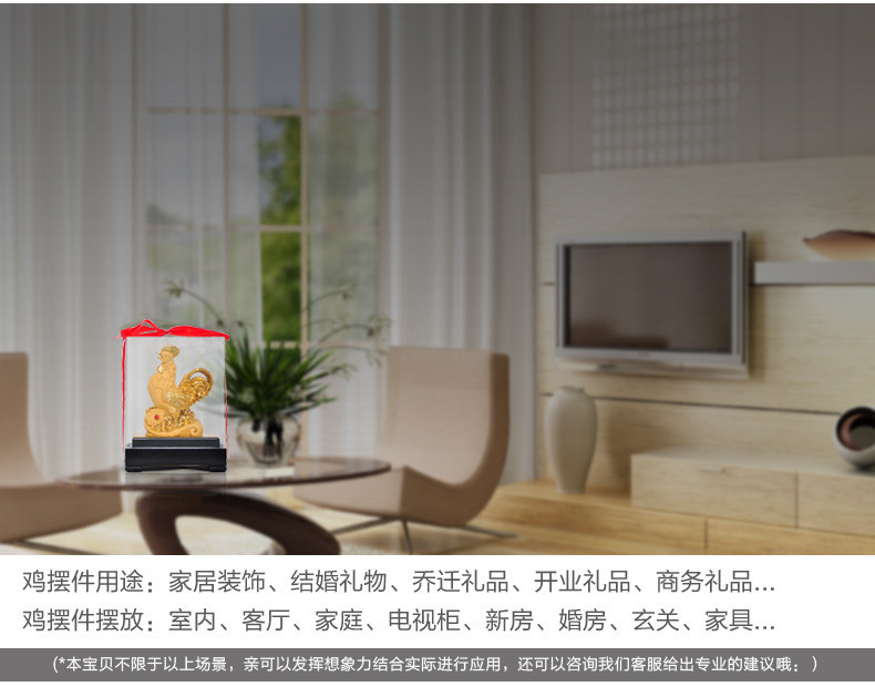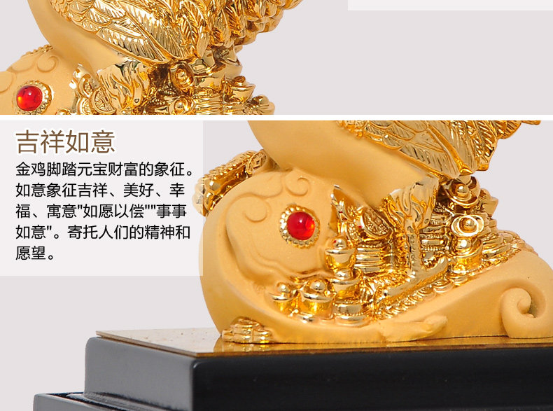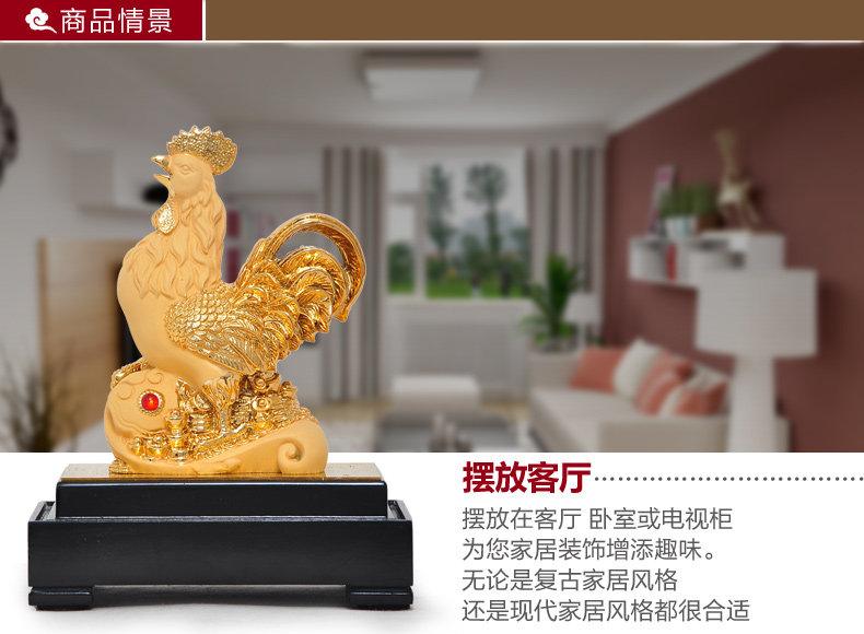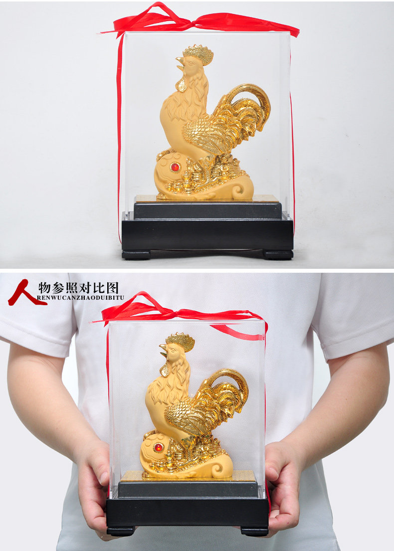 鸡摆件绒沙金工艺品生肖生日商务礼品办公室办公桌客厅玄关装饰品