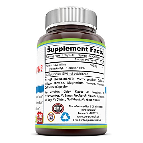 Pure Naturals Acetyl L-Carnitine Capsules, 500 mg, 120 Count