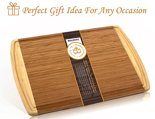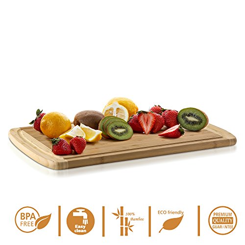 Large Cutting Board Organic Bamboo Chopping Board With Juice Grooves. Wood Serving Tray. Best For Chopping Meat, Bread, and Veggie, (Wide and Thick 18"x12") - By: Bambüsi