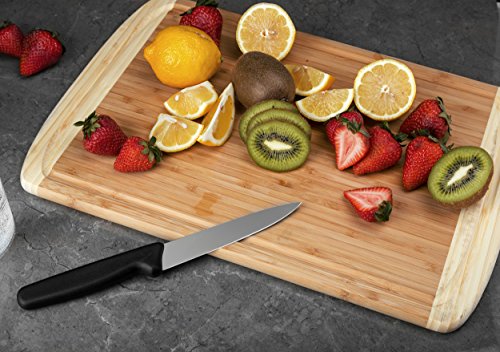 - STURDY BOARD WITH DURABLE GRAIN FINISH for Heavy Duty Cutting Jobs; Chop, Mince, Cut & Carve for Years; Tough Surface Won’t Dull Expensive Knives; Oversized 2” Ridge Catches Liquid for Easy Cleanup