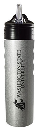 Washington State University-24oz. Stainless Steel Grip Water Bottle with Straw-Silver