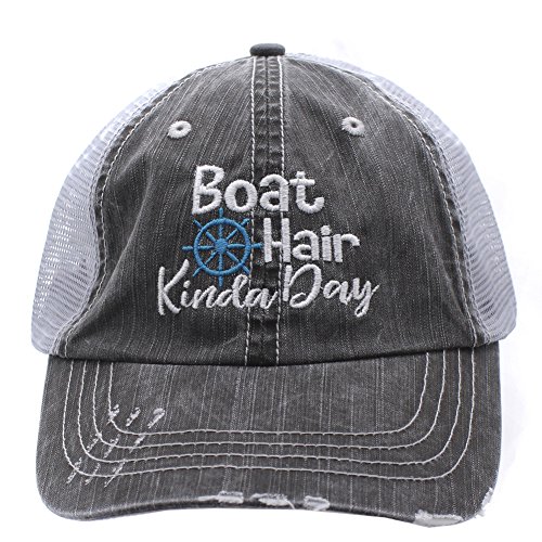 -. Title : Turquoise Boat Hair Kinda Day Women Embroidered Trucker Style Cap Hat