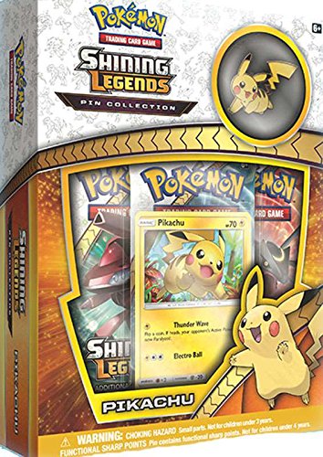 -. Feature : The Pokémon TCG: Shining Legends Pin Collection-Pikachu includes 1 foil promo card featuring Pikachu / Also comes with 1 collector's pin of Pikachu. / You will also receive 3 Pokémon TCG: shining legends booster packs. / This also contains a code card for the Pokémon trading card game online.