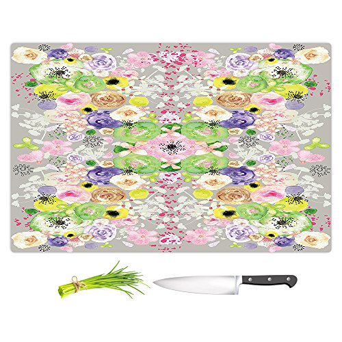 DiaNoche Designs CB-JulieAnsbroRomanBloomsGriege1 Artist Julie Ansbro-Romantic Blooms Griege Cutting Boards from, Small 11" x 8"
