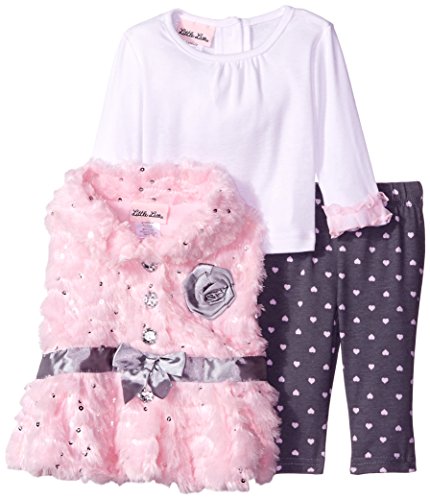 -. Title : Little Lass Baby Girls' 3 Piece Fur Vest Set Sequin Ribbon Bow
