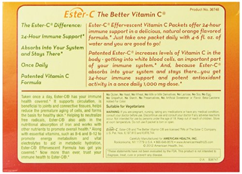 -. Binding : Health and Beauty -. Brand : American Health -. Label : AMERICAN HEALTH -. Manufacturer : AMERICAN HEALTH -. PackageQuantity : 1 -. ProductGroup : Health and Beauty -. ProductTypeName : HEALTH_PERSONAL_CARE -. Publisher : AMERICAN HEALTH -. Studio : AMERICAN HEALTH -. Title : Ester-C Effervescent (1000mg)