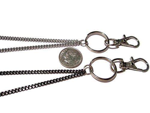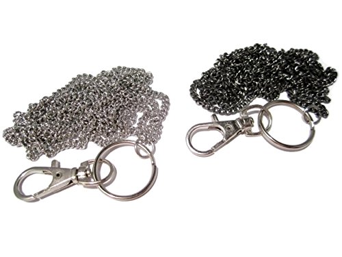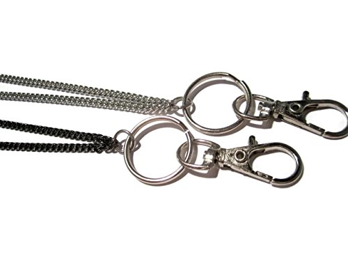 The chain is 33" long and measures approximately 18.5" from the back of the neck to the bottom of the clasp/clip. Includes a 3/4" split key ring and a 1.25" swivel top lobster claw clasp/clip.
