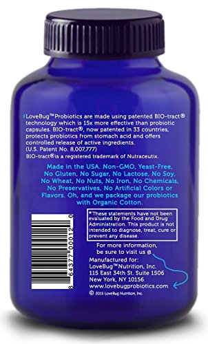 -. Binding : Health and Beauty -. Brand : LoveBug Probiotics -. Department : Health and Personal Care -. EAN : 0864377000120 -. Feature : ♥︎ AID IN DIGESTION AND METABOLISM: Studies show that gut bacteria don't just aid in digestion, they also play a critical role in metabolism and fat loss. Gut bacteria influence the way we store fat, regulate glucose, express metabolism genes and can even help regulate our appetite. LoveBug's, Here's the Skinny proprietary probiotic blend contains L. rhamnosus GG. Patented in 1985, it is #1 Most Clinically Studied strain and the subject of 800 publications to date. / ♥︎ RELIEVE YOUR SENSITIVE TUMMY: LoveBug Probiotics loaded with 8 strains of Bifidobacterium and Lactobacillus work to restore depleted good bacteria to help with constipation, diarrhea, and symp of IBS. Our probiotics increase the levels of good bacteria, which is an essential part of fighting Candida yeast overgrowth and Leaky Gut. LoveBug probiotics are time released so that the benefits last throughout the day. / ♥︎ INCREASE ENERGY LEVELS AND IMPROVE MOOD: 80-90% of serotonin, the brain's feel-good hormone, is produced by nerve cells in the gut. Some of the bacteria in our guts release chemicals that communicate with the brain through the vagus nerve. New research shows a link between digestive issues and mood disorders. What's Your Gut Feeling? / ♥︎ PATENTED DELIVERY TECHNOLOGY: 15x more effective than capsules. BIO-tract® delivery technology offers controlled release of active ingredients. Patented in 33 countries worldwide (U.S. Patent No. 8,007,777) / ♥︎ MADE IN THE USA. Non-GMO, Yeast Free, No Gluten, No Sugar, No Lactose, No Soy, No Wheat, No Nuts, No Chemicals or Preservatives, No Artificial Colors or Flavors. Oh, and we package our probiotics with Organic Cotton! -. IsAdultProduct : 0 -. Label : LoveBug Nutrition, Inc. -. LegalDisclaimer : These statements have not been evaluated by the Food and Drug Administration. This product is not intended to diagnose, treat, cure or prevent any disease. -. Manufacturer : LoveBug Nutrition, Inc. -. PackageQuantity : 30 -. ProductGroup : Health and Beauty -. ProductTypeName : HEALTH_PERSONAL_CARE -. Publisher : LoveBug Nutrition, Inc. -. Studio : LoveBug Nutrition, Inc. -. Title : LoveBug Probiotics ♥︎ Here's The Skinny - Multi-Strain Probiotic Supplement for Digestive Health. 10 Billion CFU. Delayed Release, Gluten Free Tablet. 30 Day Supply -. UPC : 864377000120