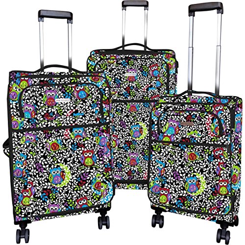 Product Description Treat yourself with this all new whimsical owls design travel case that would surely last long because is durable and so reliable to put your things on. A great item to have. Set includes: 3 suitcases Features: Softsided, Expandable, Rolling, Spinner and Durable | Materials: Polyester 0